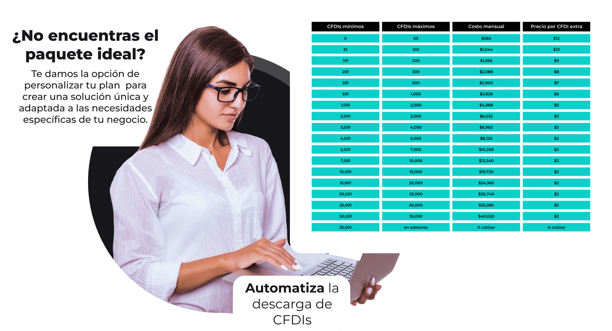Todos los planes incluyen todos los servicios y se ajustan al volumen de CFDIs que manejas, pagando solo por lo que necesitas.